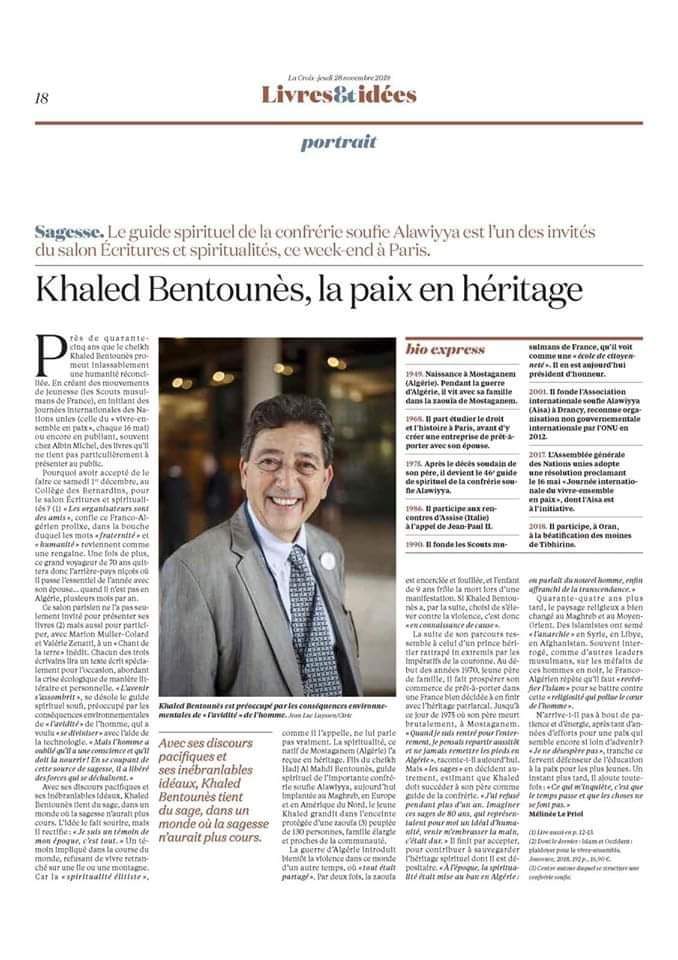 • شيخ الطريقة الصوفية العلاوية هو واحد من ضيوف صالون كتابات وروحانيات، الذي سيجري نهاية هذا الأسبوع في باريس.