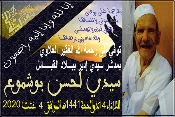 العودة إلى "إنتقل إلى رحمة الله سيدي لحسن بوشموع اليوم الثلاثاء 04 غشت 2020" -MODI-03-06-2020 التالي السابق