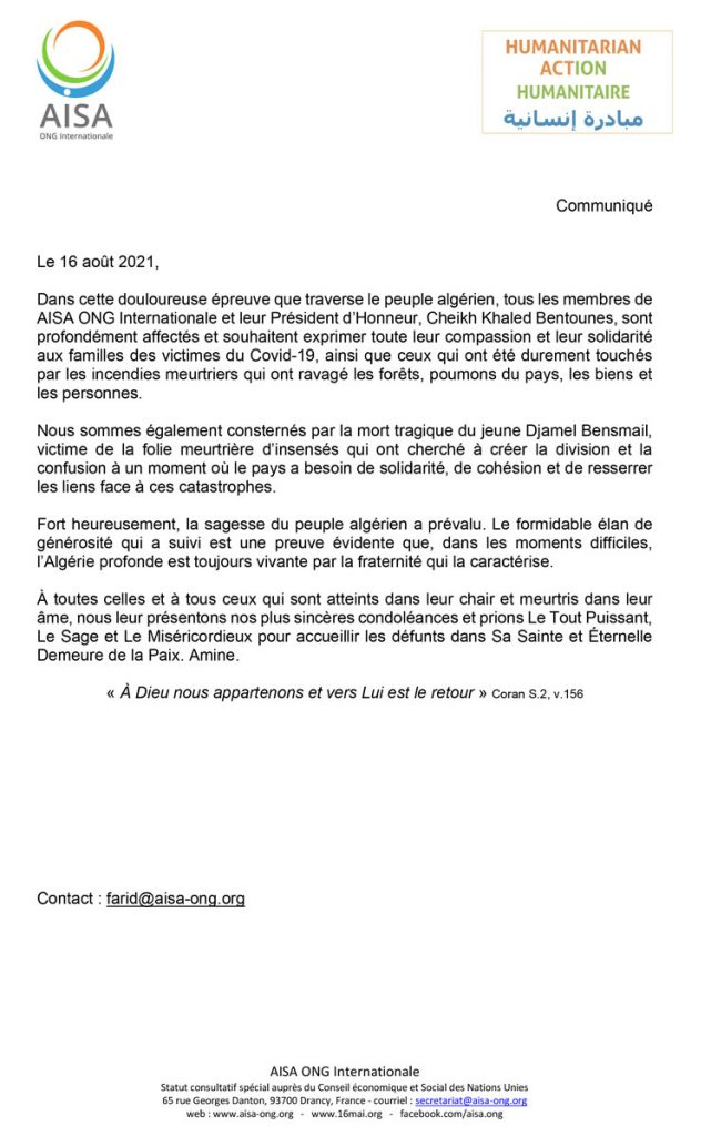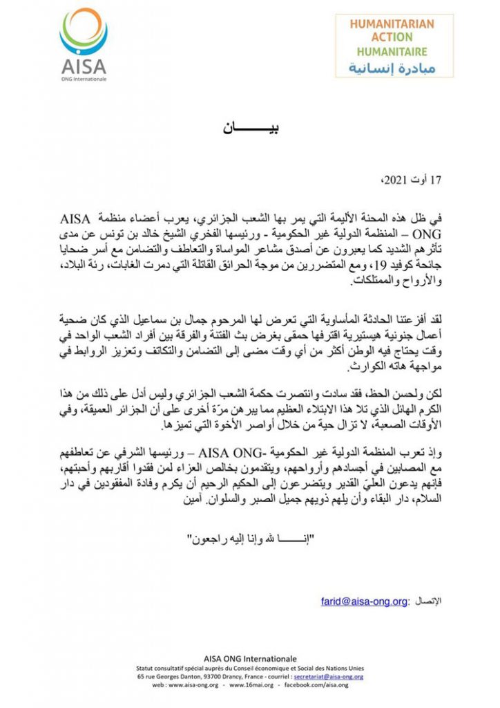 أنشطة الجمعية مبادرة إنسانية Humanitaian Action Humanitaire بواسطة ASSO ALAWI اخر تحديث أغسطس 25, 2021 1٬093 مشاركة 1٬093 مشاركة