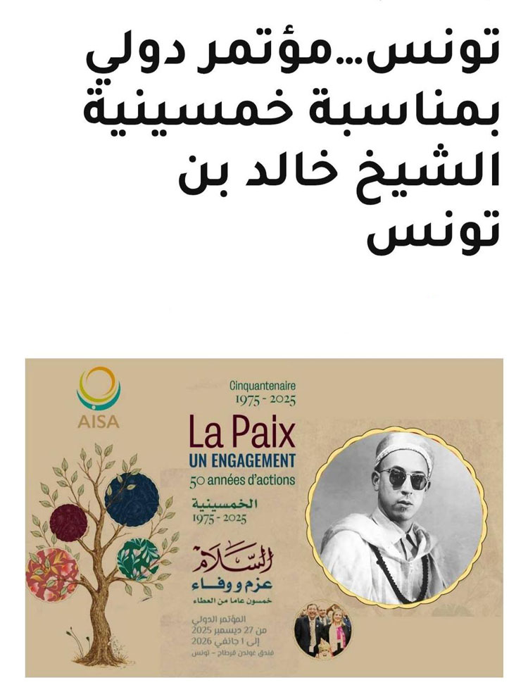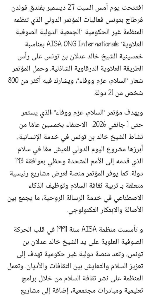 أنشطة الجمعية ستنطلق احتفالات الخمسينية في مدينة تونس ابتداءً من 27 ديسمبر 2025. بواسطة admin بتاريخ ديسمبر 29, 2025 18 مشاركة https://web.facebook.com/reel/1566809831027437 18 مشاركة