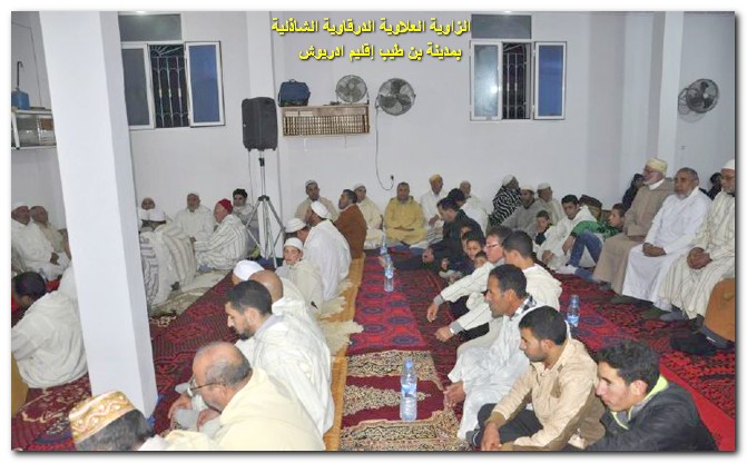 نظمت الطريقة العلاوية الدرقاوية الشاذلية ، خلال ليلة يوم الخميس 24/12/2015 ، حفلا بمناسبة ذكرى المولد النبوي الشريف وقد توافد على الزاوية الكائنة قرب محطة الوقود ” بوطكسي ” عدد من الموردين وأتباع الطريقة العلاوية الدرقاوية الشاذلية من مدينة ابن الطيب والمناطف المجاورة …