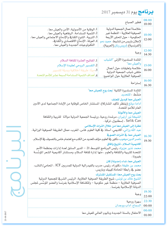 العيش معا، المصالحة بين العائلة الإنسانية 30 و31 ديسمبر 2017