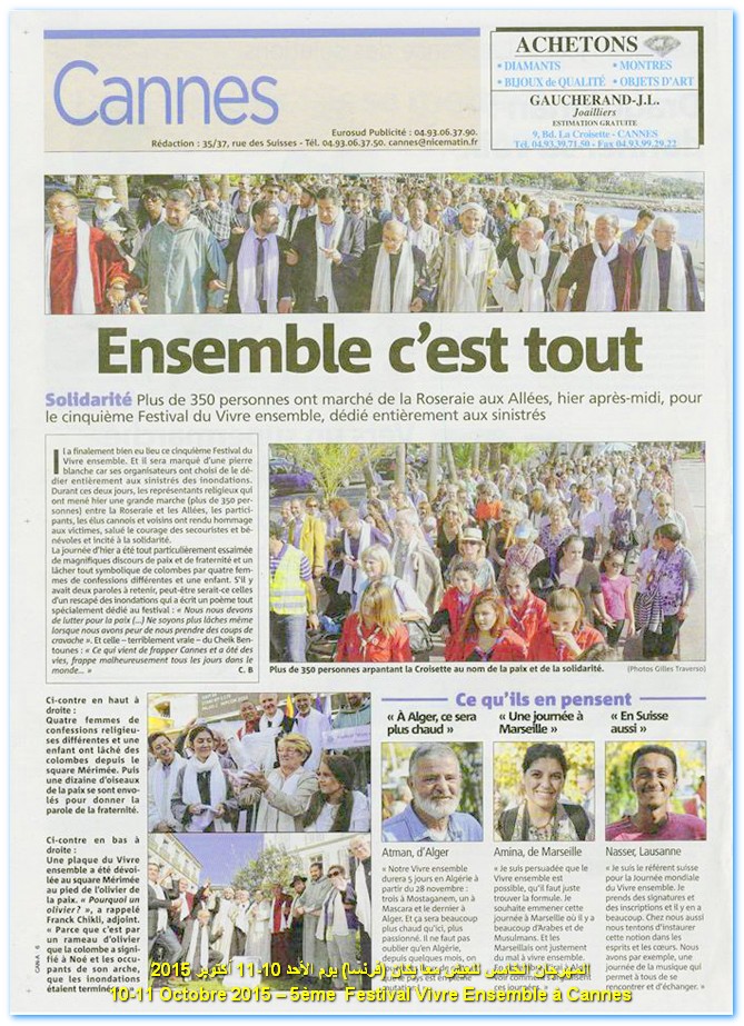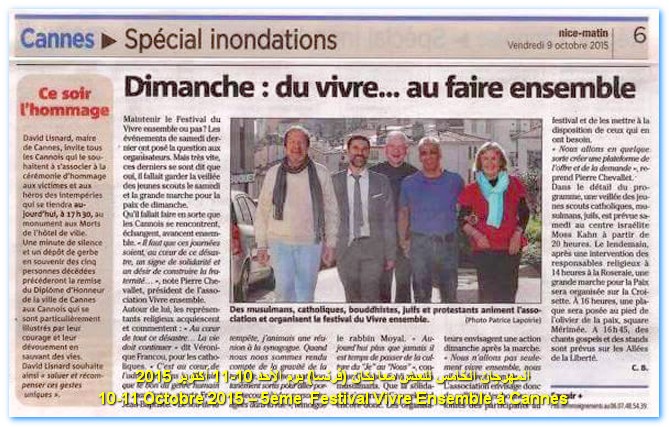 10-11 Octobre 2015 – 5ème « Festival Vivre Ensemble à Cannes ».