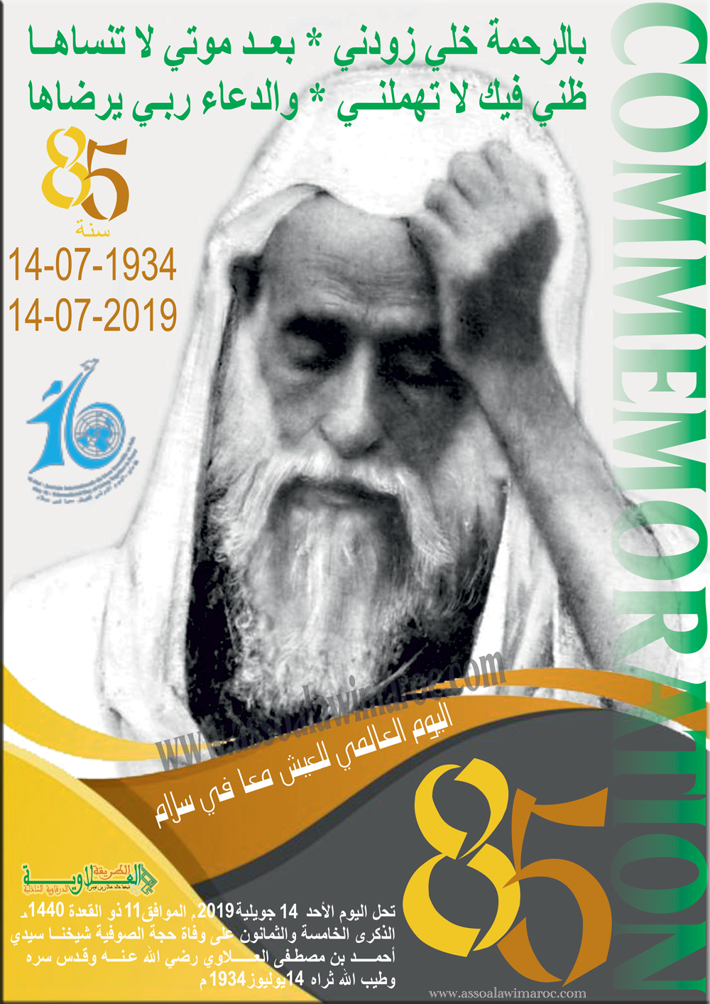 الذكرى الخامسة والثمانون لوفاة الغوث الأكبر حجة الصوفية شيخنا سيدي أحمد بن مصطفى العلاوي رضي الله عنه وقدس سره 14 يوليوز 2019