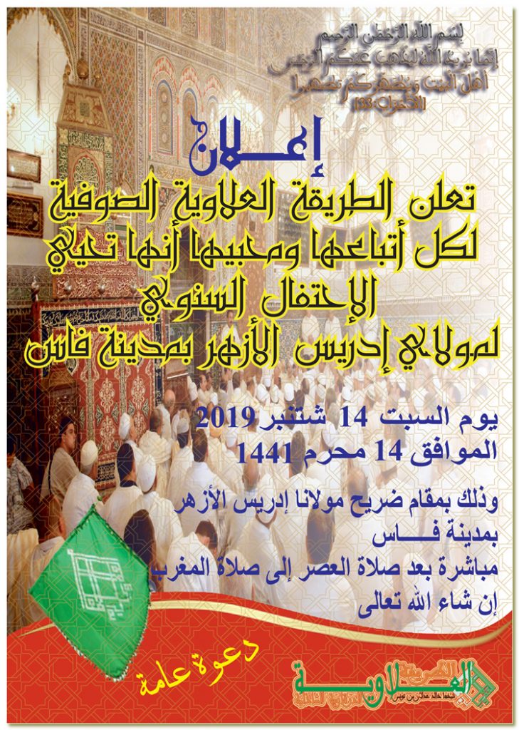 لقد دأبت الطريقة العلاوية الدرقاوية الشاذلية كل سنة على إحياء جمع روحي في رحاب ضريح المولى إدريس الأزهر بفاس 14 شتمبر 2019