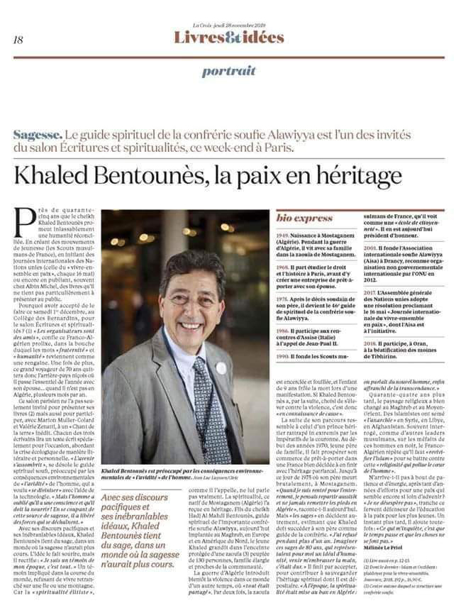 شيخ الطريقة الصوفية العلاوية هو واحد من ضيوف صالون كتابات وروحانيات، الذي سيجري نهاية هذا الأسبوع في باريس.