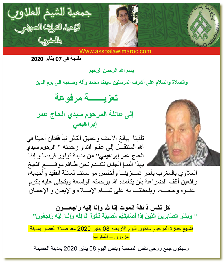 فيديوالتعــازي تعزية مرفوعة إلى عائلة المرحوم سيدي عمر ابراهيم بواسطة ASSO ALAWI اخر تحديث يناير 9, 2020 1٬693 مشاركة https://www.facebook.com/sahila.ouali/videos/3237126126302918/ 1٬693 مشاركة
