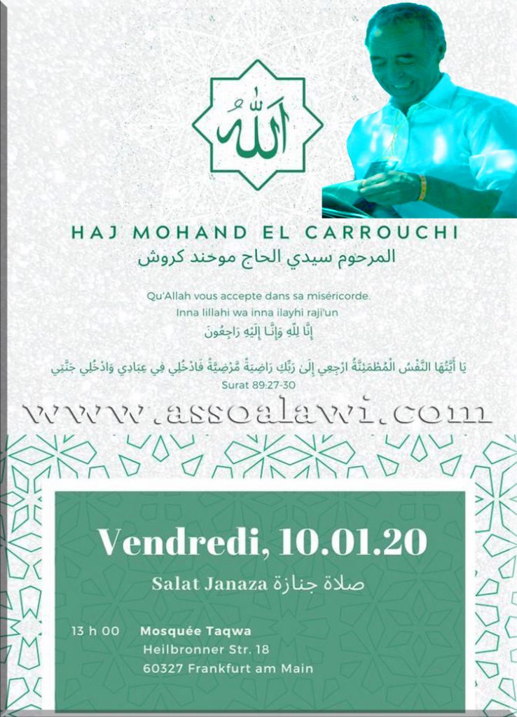 Le 5 décembre 2019, nous quittait déjà son épouse la Fakira Hadja Fatima El Carrouchi. Un mois plus tard, jour pour jour, c’est son époux Hadj Mohand El Carrouchi qui part la rejoindre.