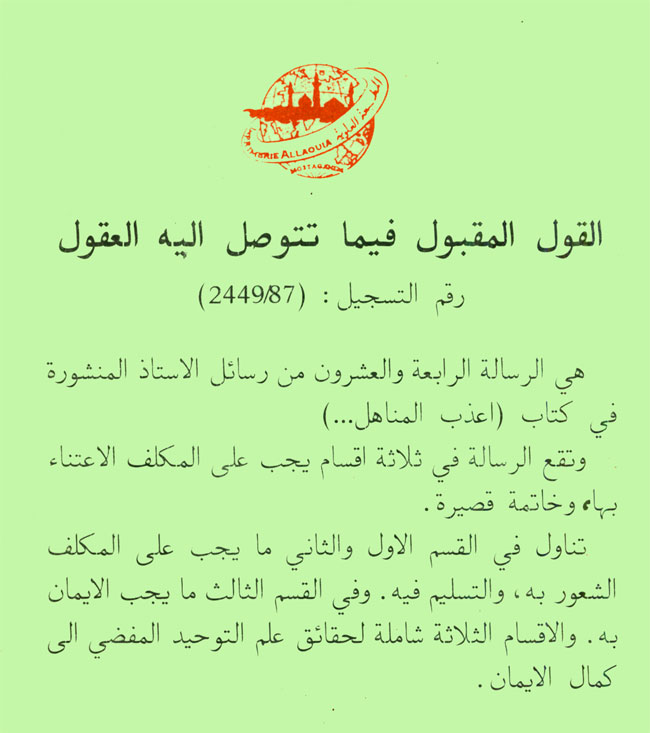 كتب الشيخ العلاوي القول المقبول فيما تتوصل إليه العقول بواسطة admin اخر تحديث 1٬881 مشاركة 1٬881 مشاركة