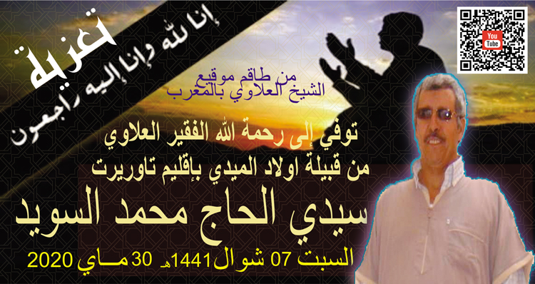 سلام عليكم ورحمة الله وبركاتهإاخواني فقراء أخواتي فقيرات أقدم احر تعزية الأسرة مرحوم فقير العلاوي سيدي الحاج محمد السويد انا لله وانا اليه راجعون البقاء لله الله يرحمه ويسكنه فسيح جناته ويلهم أهله الصبر والسلوان