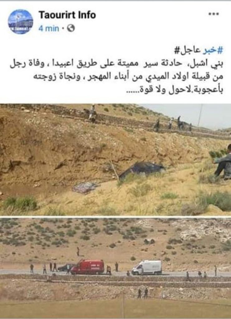 في حادثة سير مميتة على طريق اعبيدا بقبيلة بني اشبل بإقليم تاوريرت