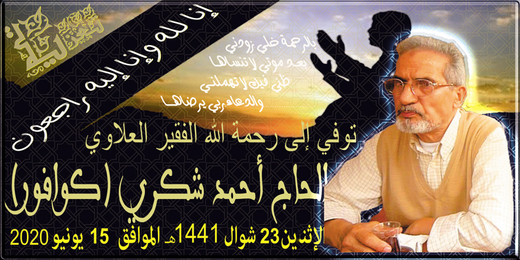 جميع فقراء ومحبي الطريقة العلوية عزائنا واحد في المرحوم سيدي الحاج أحمد شكري تغمده الله بواسع رحمته الله إعظم الأجر وتعازينا الحارة لعائلة الفقيد واحبابه
