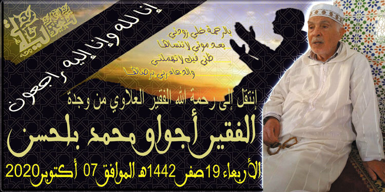 تلقينا قبل قليل وفاة المرحوم الفقير أجواو محمد بلحسن من وجدة 07 اكتوبر 2020