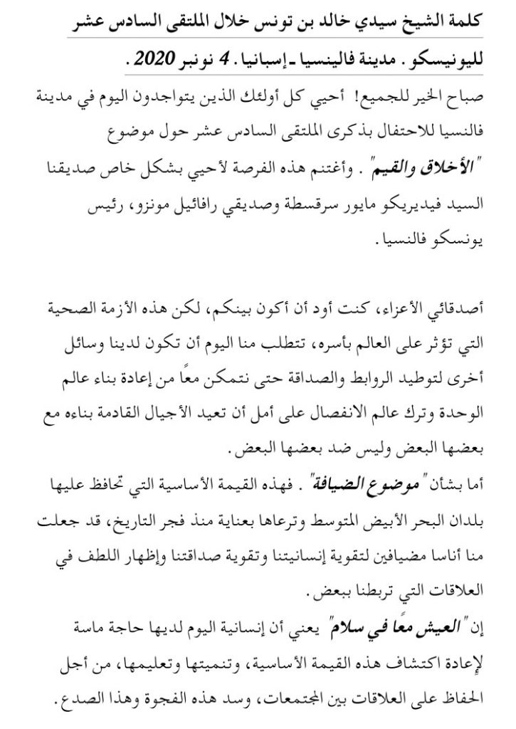 إليكم الترجمة باللغة العربية لمداخلة سيدي الشيخ خالد بن تونس بمناسبة الملتقى السادس عشر لليونيسكو.