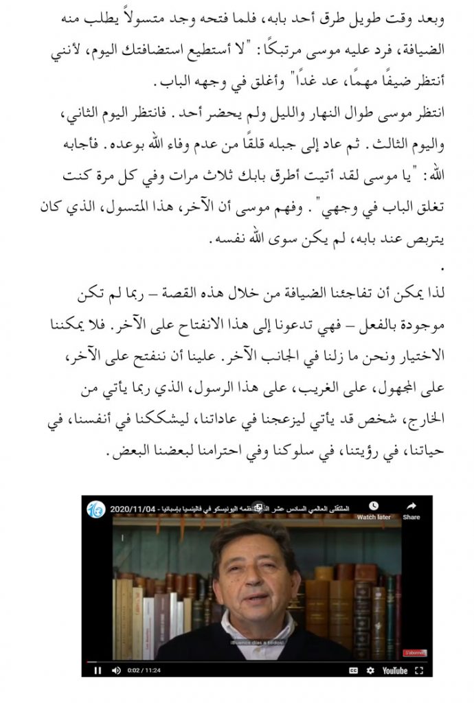 المداخلة ستكون باللغة الفرنسية ولكن ستكون مترجمة إلى الإسبانية في الفيديو مباشرة. وسأعطيكم ترجمة المحاضرة مكتوبة باللغة العربية لاحقا.