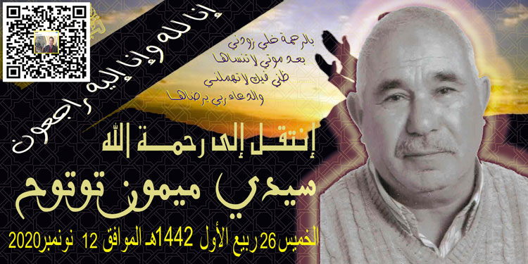 تلقينا قبل قليل وفاة سيدي ميمون توتوح 12 /11 / 2020
