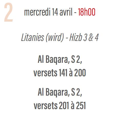 Litanies (wird) et récitation du Coran : Hizb 3 & 4