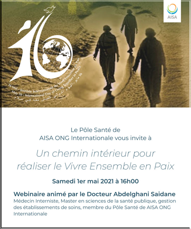 يدعوكم قطب الصحة والنظافة للجمعية العالمية الصوفية العلاوية، المنظمة غير الحكومية AISA ONG ل “طريق داخلي لتحقيق العيش معا في سلام”