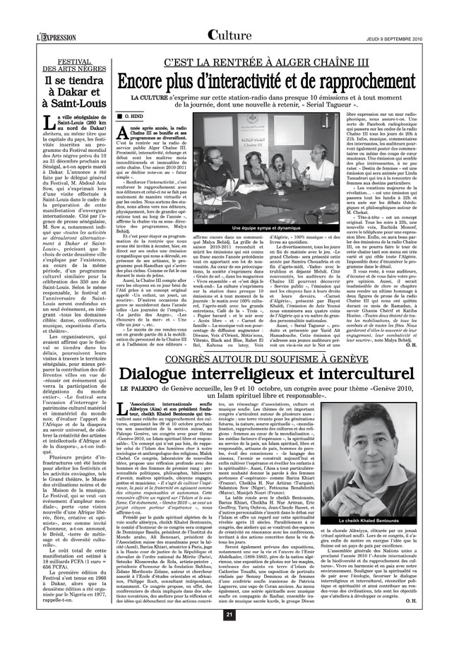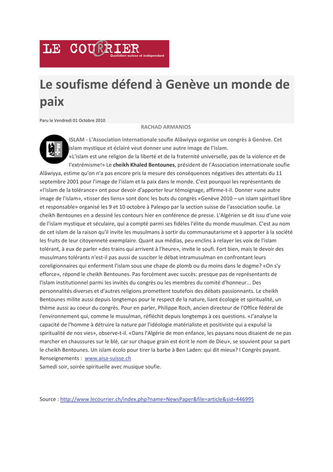 أنشطة شيخ الطريقة العلاوية Islam Spirituel Libre et responsable_La presse en parle.pdf بواسطة admin اخر تحديث يوليو 20, 2017 1٬211 مشاركة 1٬211 مشاركة