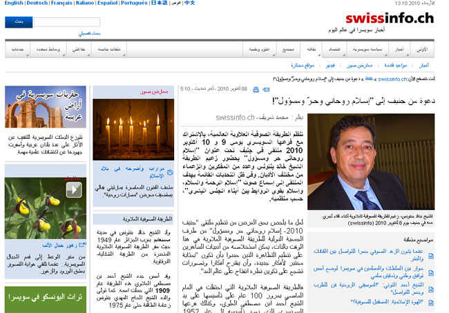Uncategorized دعوة من جنيف إلى إسـلام روحاني وحـرّ ومسؤول 08/10/2010 بواسطة admin اخر تحديث أغسطس 4, 2017 4٬596 مشاركة http://www.assoalawimaroc.com/photo/SUIS/Genev%20PDF.pdf http://www.swissinfo.ch/ara/detail/content.html?cid=28504598 4٬596 مشاركة