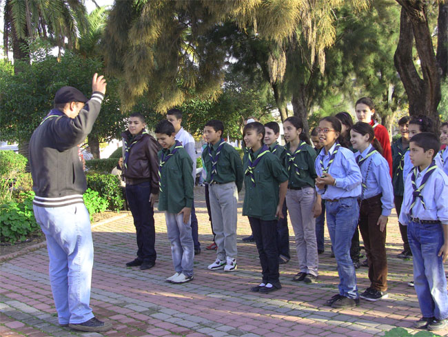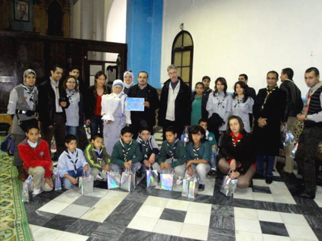 الزيارة بعدد كبير من أعضاء الكشفية الحسنية بزيهم الرسمي و بعدد وفير