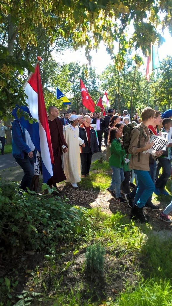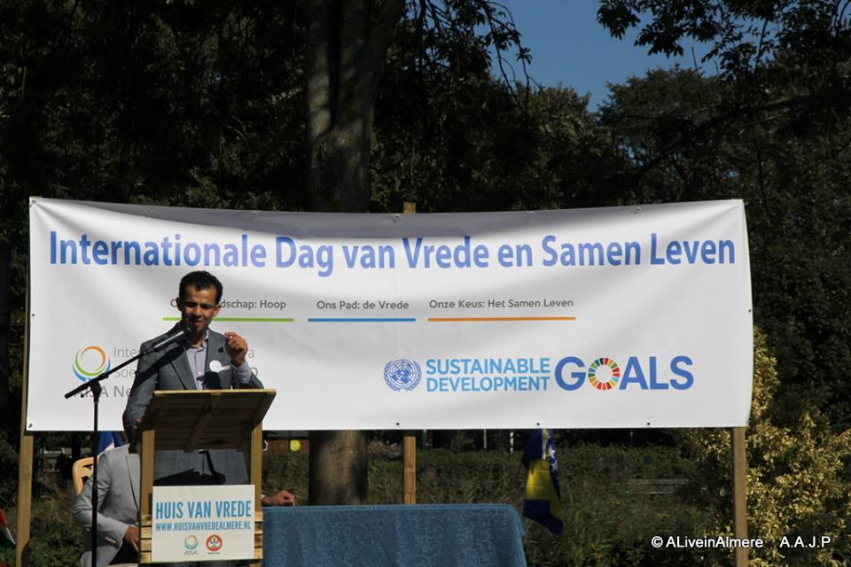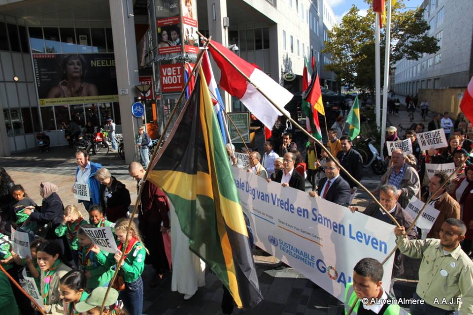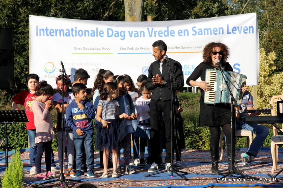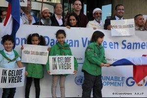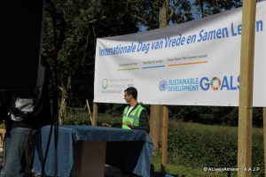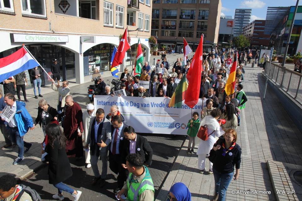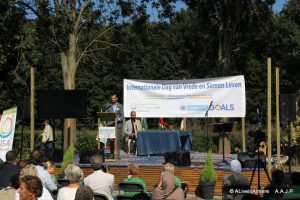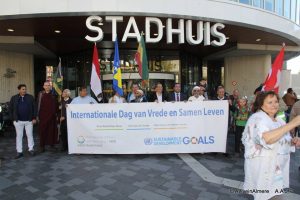 Ce samedi 23 septembre 2017, le « HUIS VAN VREDE » (Maison de la Paix) à Almere aux Pays-Bas a organisé la première journée de la Paix et du Vivre Ensemble. Après une marche pour la Paix et le Vivre Ensemble de la mairie de Almere vers la « Huis van Vrede », les ateliers de l’après-midi ont abordé de façon très concrète les 6 valeurs centrales ainsi que les 17 buts de développement durable à réaliser. Sous un soleil radieux, les enfants ont pu jouer à cœur joie en découvrant une dizaine de jeux « de l’époque » pendant que le nombreux public – principalement néerlandais – a assisté à la remise du premier « Prijs voor de Cultuur van Vrede » (Prix pour la Culture de Paix) et a pu jouir de la clôture des festivités par d’agréables sons andalous. Rendez-vous l’année prochaine une la 2e journée !