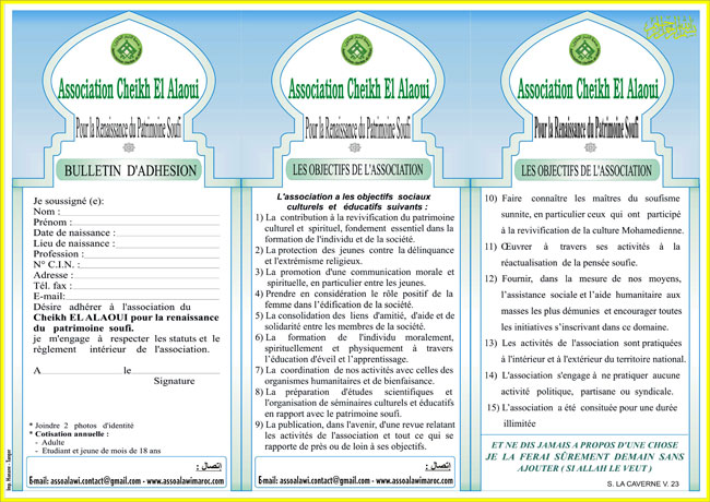 سنة 1998 بطنجة وهي جمعية اجتماعية ، ثقافية، تربوية وروحية تستمد تعاليمها من التصوف باعتباره قلب الإسلام الذي يسموا بالفرد إلى الفضاء الإنساني الواسع وترتكز في منهجيتها على قيمه النبيلة الفاضلة