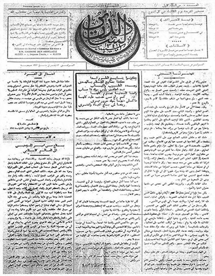 جريدة دينية سياسية إخبارية أسبوعية، أسست لإعلاء كلمة الدين، وقد صدرت قي يوم الثلاثاء 02 جانفي سنة 1923م بمدينة الجزائر العاصمة لمديرها الحسن بن عبد العزيز ومحررها مصطفى حافظ