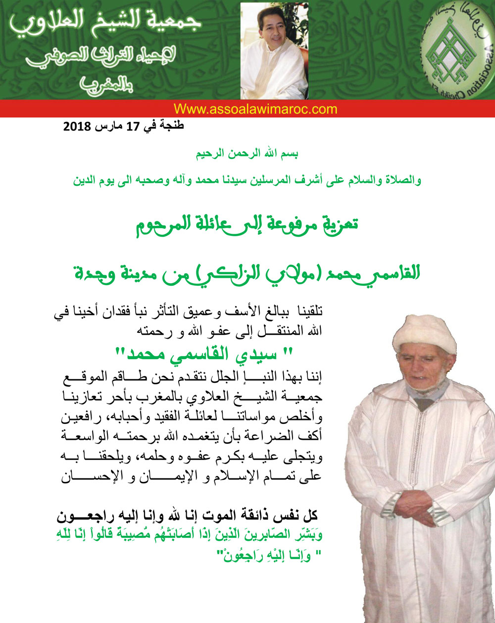 التعــازي انتقل اليوم السبت 17 مارس 2018 الى عفو الله السيد القاسمي محمد بواسطة ASSO ALAWI اخر تحديث مارس 26, 2018 3٬259 مشاركة 3٬259 مشاركة