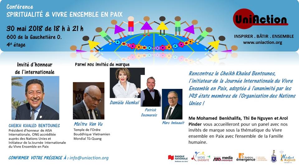 تعال للقاء الشيخ خالد بن تونس، البادئ في اليوم العالمي للعيش معاً في سلام – 30 ماي 2018 كندا