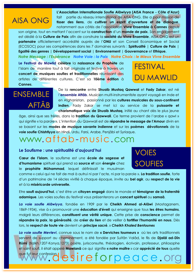 10e Festival du Mawlid Cannes – 10 Décembre 2016