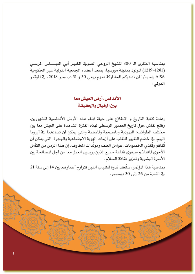 المؤتمر الدولي الأندلس، أرض العيش معا بين الخيال و الحقيقة 30 و 31 ديسمبر 2018