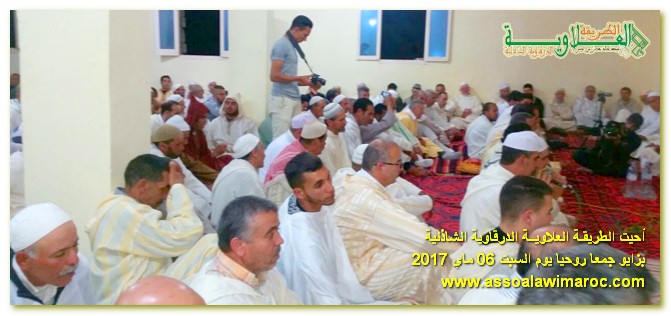 احيت الطريقـــة العلاويــــــة الدرقـــــاوية الشـــاذلية ” مساء يوم السبت 06 ماي 2017 جمعا روحيا تحت إشراف وتنظيـم مقدم الزاوية بوزيان خواجي حضره مئات الفقراء والفقيرات والمحبين من جميع مناطق المغرب بالزاوية العلاوية بمدينة ازايـــــــــــو