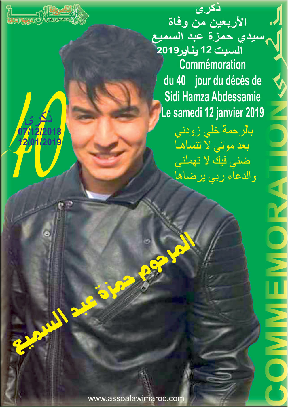 الذكرى الأربعون من وفــــاة سيدي حمزة عبد السميع يوم السبت 12 يناير 2019 بدار الســــــلام بمدينة مورسية إسبانيا