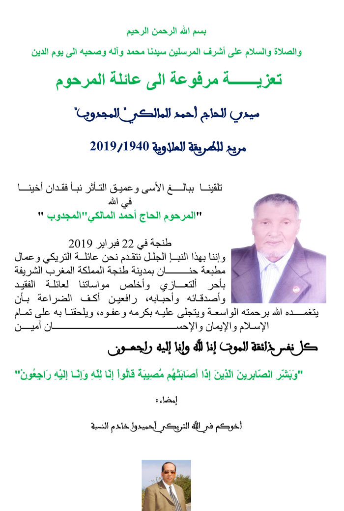 إلى عائلة المرحوم سيدي الحاج أحمد المالكي “المجدوب”