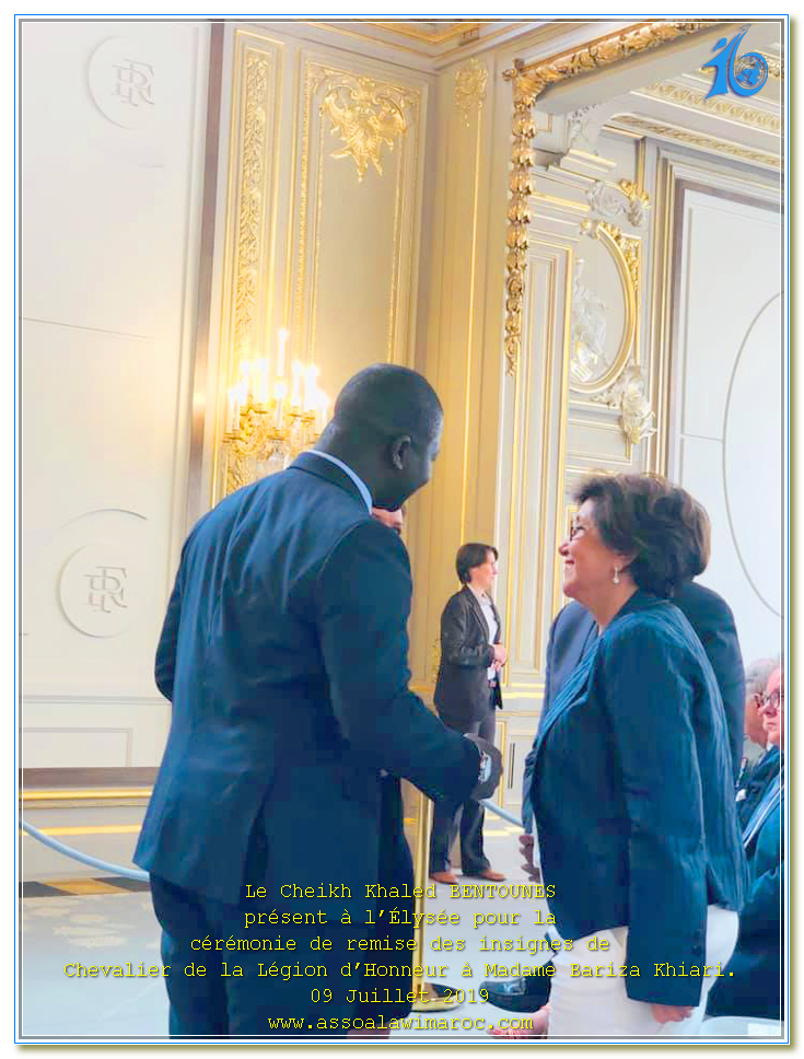 Le Cheikh Khaled BENTOUNES présent à l’Élysée pour la cérémonie de remise des insignes de Chevalier de la Légion d’Honneur à Madame Bariza Khiari